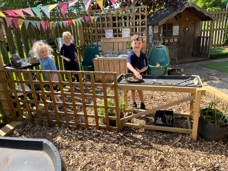 Our new outside area with a mud kitchen